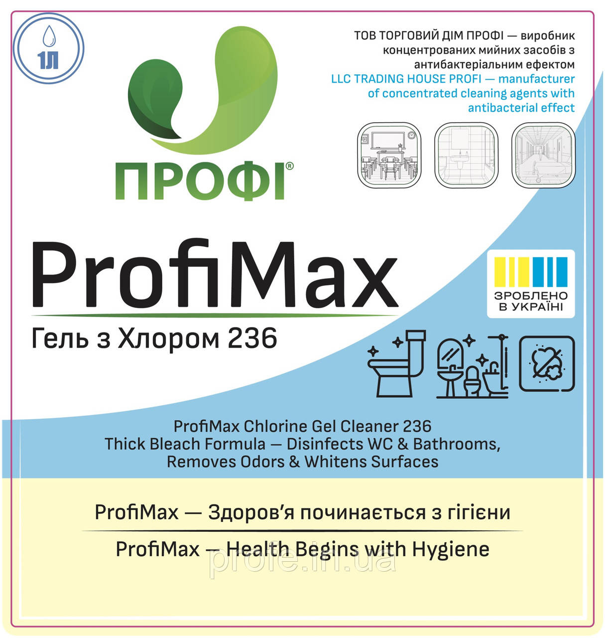 ПРОФІ 236 – потужний густий хлорний засіб для відбілювання, очищення та дезінфекції. Ефективно видаляє бруд, плісняву, вапняний наліт, неприємні запахи, знищує бактерії, віруси та грибки. Підходить для унітазів, ванної кімнати, підлог, стін, санітарних зон, громадських і промислових приміщень.